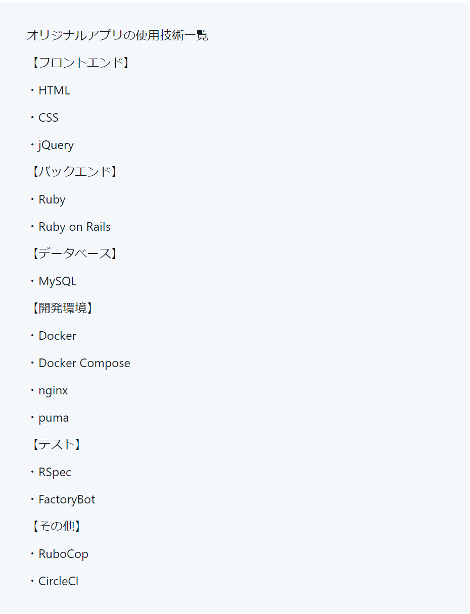 RailsチュートリアルでWebアプリケーション開発の流れを学べたので、「自分でオリジナルアプリを作ってみたい!」と思い、作りたいアプリを思い浮かべ、どんなアプリを作るのかが決まってからは、夢中で開発していました。
