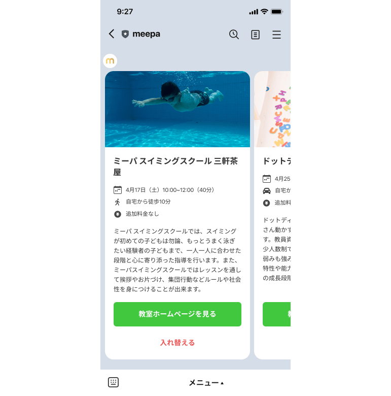 meepaは、お子さんの「本当の好き」を見つけるために、色々な習い事や課外活動を気軽に試せるようにすることを目指した課外活動マッチングサービスです。