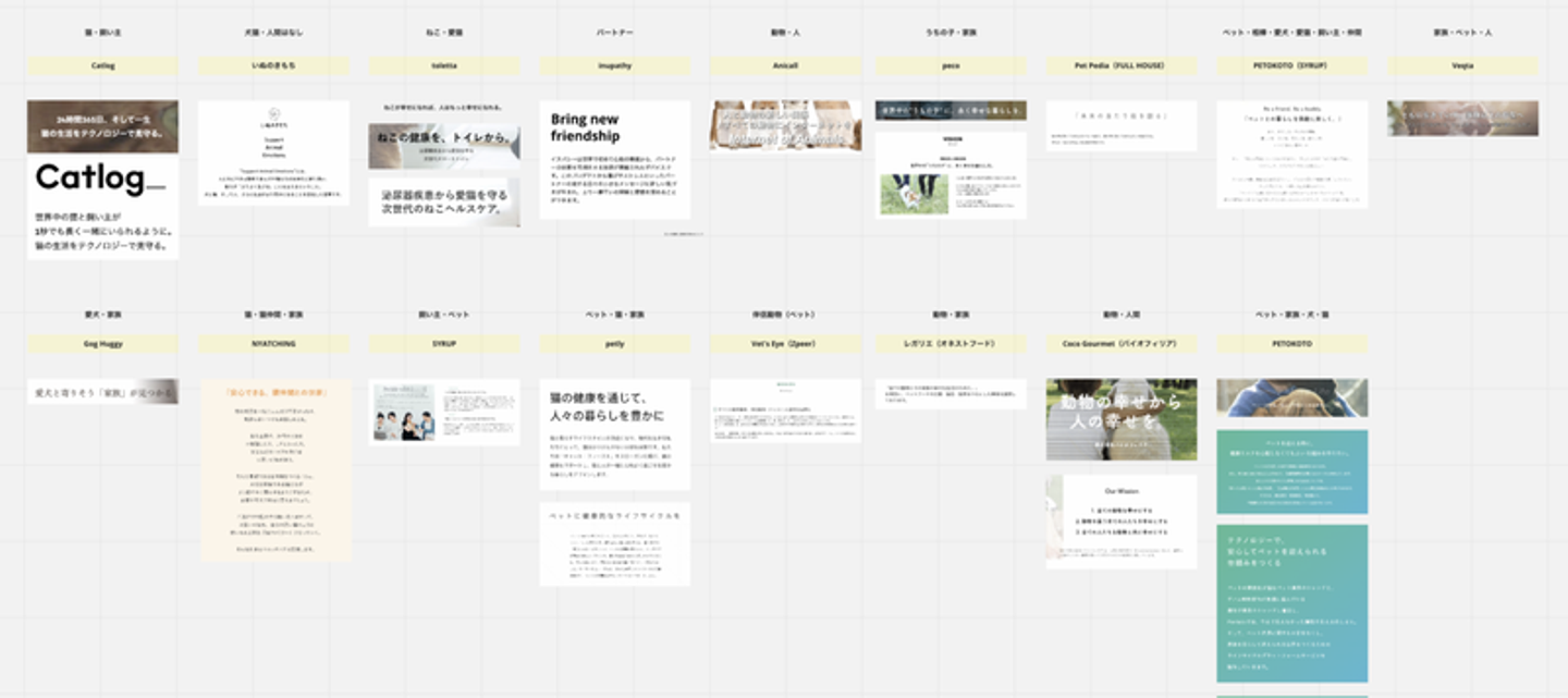 ポイントは、メンバー間の知識レベルを事前にできる限りそろえることです。一緒にワークするメンバーのサービス理解度や知識レベルにギャップが大きい場合、知識の少ないメンバーからのアイデアや意見が出辛くなることがあります。そこで事前のインプットでできる限り知識レベルをそろえることが重要になってきます。具体的にどんなインプットをしたかというと、onedogがこれから市場でどういったポジションを取っていくかを俯瞰して考えられるように、同業他社のミッション・ビジョンの参考を収集し、では他社では「犬」のことをどう呼んでいるか、どれくらいの抽象度でビジョン・ミッションを掲げているか、などを共有しました。