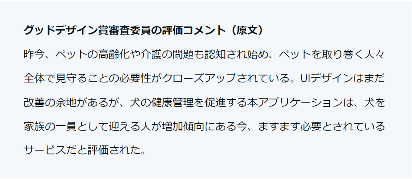 私たちが提供する愛犬のヘルスケアアプリ「onedog」が、犬を家族の一員として迎える人が増加傾向にある今、ますます必要とされているサービスとして、「2021年度グッドデザイン賞」を受賞しました!👏