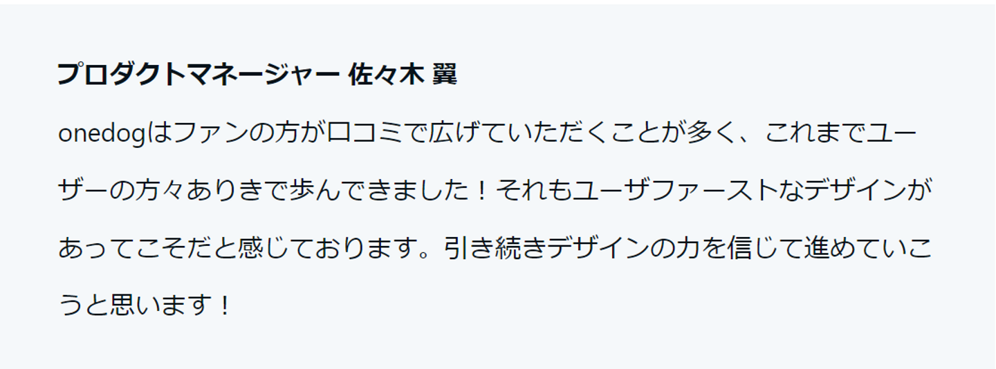 onedogのグッドデザイン賞を受賞することができたのは、これまでのonedogの思想・開発が生んだ成果が、ユーザー(またはターゲット)に向けて価値提供できている(またはでき得る)プロダクトであると評価されたからだと思っています。