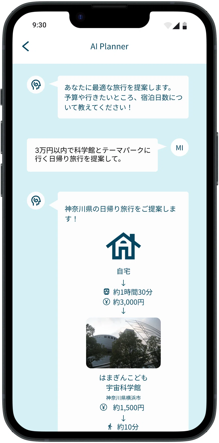 AI Plannerと会話形式で旅行プランを作成することもできます。