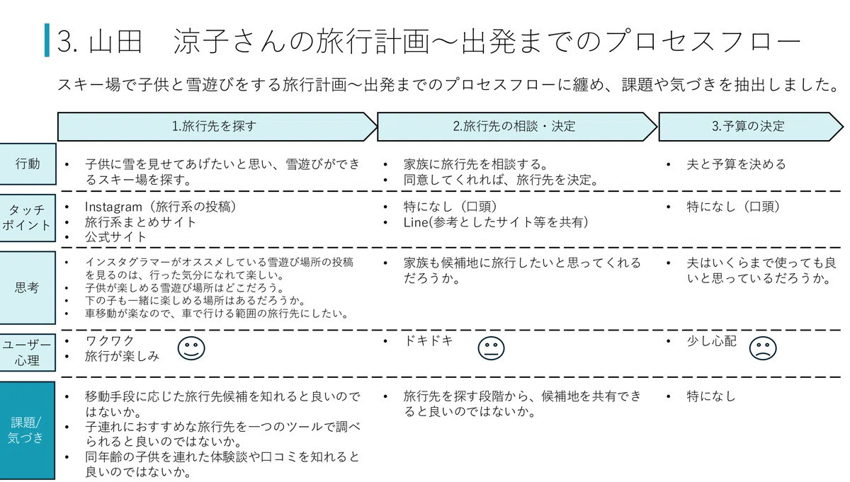 こどもを連れての旅行に行く際、事前の計画と準備が大変だったというご自身の体験から、情報収集や情報管理をサポートするアイデアです。