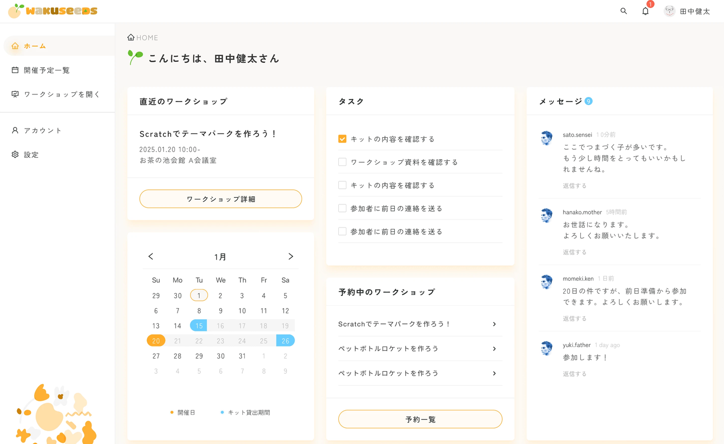 ワークショップをしたい大人がどれくらいいるのかという点は、事前に検証する必要があるかもしれません。