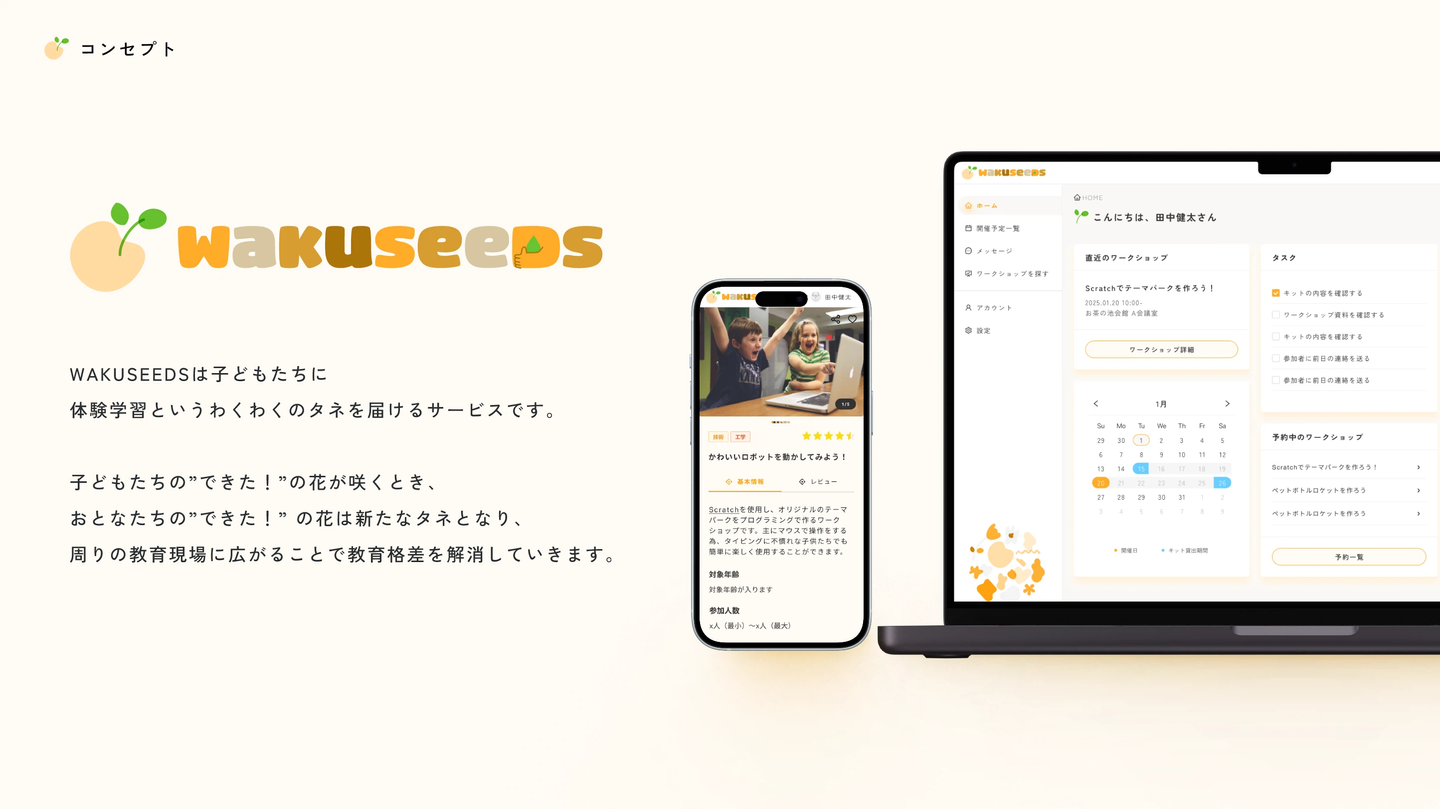 こどもたちが主体的に学べるワークショップを通して、体験学習の機会を提供し、年収や地域差による教育格差を解消しようというアイデアです。