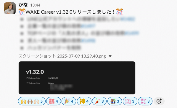 リリースのたびに盛り上がるSlack