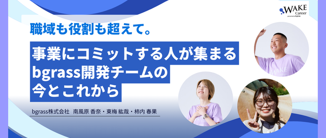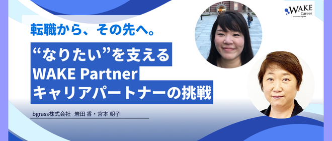 こんにちは!WAKE Career です。WAKE Career を運営するbgrass株式会社のミッションは、「"なりたい”を解放する」。バイアスによって選択肢を狭めず、自分の「なりたい」を解放できる世界を目指しています。そのミッションのもと、「仕組みとテクノロジーで、バイアスのない選択と評価を当たり前にする」をビジョンに掲げ、女性IT人材支援と構造へのアプローチの両軸を推進しています。今回は、代表のだむはと、正社員として入社して1年が経ったマーケティング・コミュニティ運営チームのみゆきが、活動のやりがいやカルチャーについてじっくり語りました。目次仲間と味方と一緒に挑む心強さーーまずは...