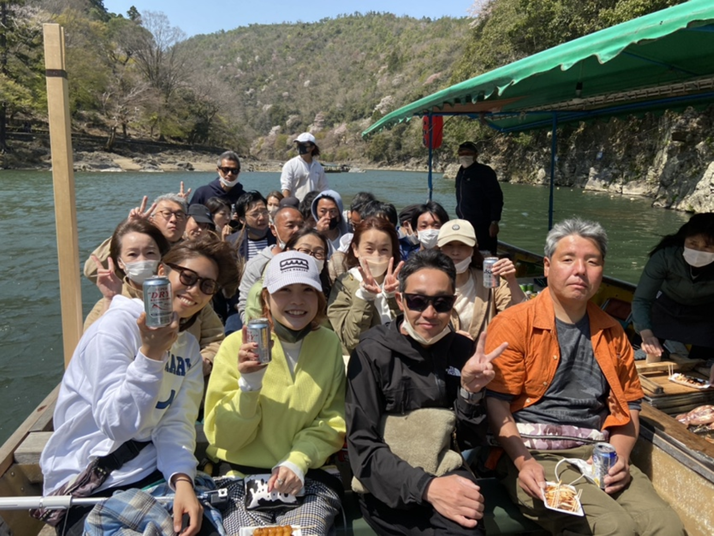 当社では毎年、シーズンイン前に、事故など起きず無事に夏を乗り切れるよう神社への参拝と、また一致団結を図り社内レクレーションを行っております。そんな社内レクレーションを今年は嵐山で行いました!