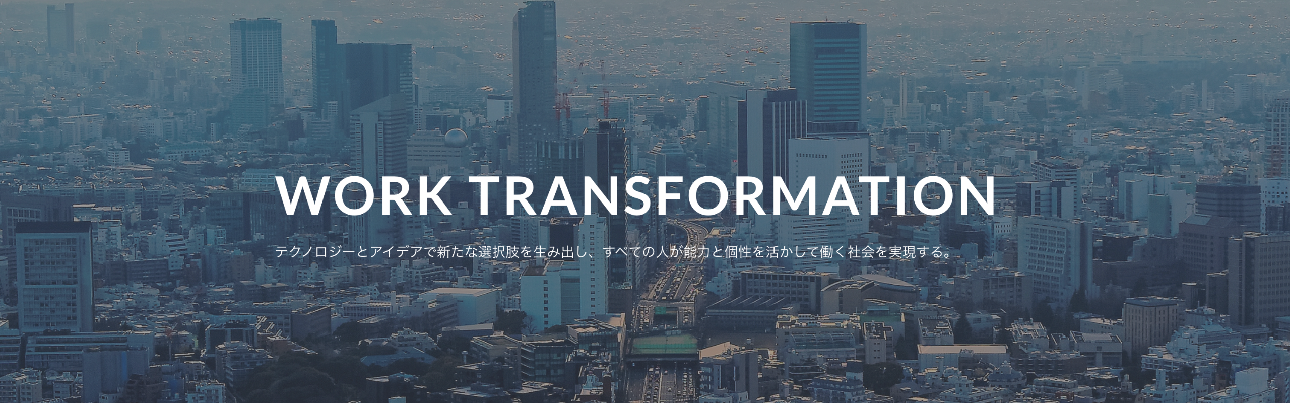 【Vision】 WORK TRANSFORMATION テクノロジーとアイデアで新たな選択肢を生み出し、すべての人が能力と個性を活かして働く社会を実現する。 【Mission】 意志ある人に、変革機会を提供する。