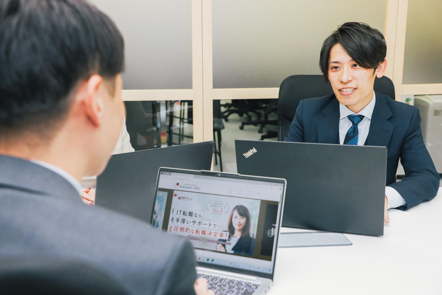 現在はIT事業部の人材紹介コンサルタントとして、求職者と求人企業の両方を担当する両面型と呼ばれるスタイルで仕事をしています。求人企業の開拓から始まり先方の悩みをヒアリング、そして求人票を預かり求職者へ当該案件の紹介を行います。