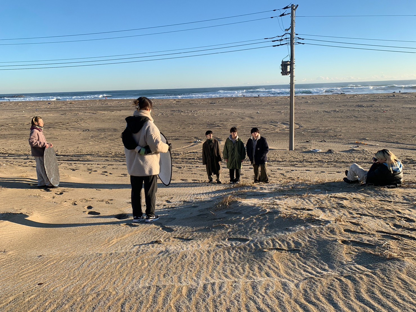 卒業制作では、映像と写真を作りました。(写真↓卒業制作)僕が監督になって、15人ぐらいのチームで照明や撮影班なども組んで取り組みました。バンドのアーティスト写真の撮影を海岸でやった時には、音響とか照明とかも加えて作り上げたんです。(写真↑砂浜)今までこういう同じ空間で同時につくるというやり方しか知らなかったので、職場に入ってみて驚きがありました。放送の仕事はここが全く違っていて、ニュースは別々の専門部署でそれぞれ作って、放送時間に間に合うようにそれぞれの持ち場で一斉に作りこむんです。