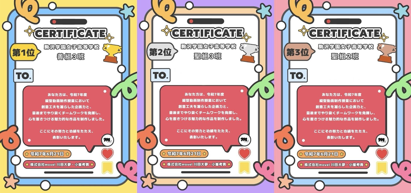 今回の駒沢学園女子高等学校での「SNS縦型動画を制作する特別授業」の実施から、movelは、学生たちの高い自主性とハイレベルな創造性に驚きつつも、若者の感性や感覚が「これからのクリエイティブ」を生み出していく上で、強力な武器となることを再確認しました。