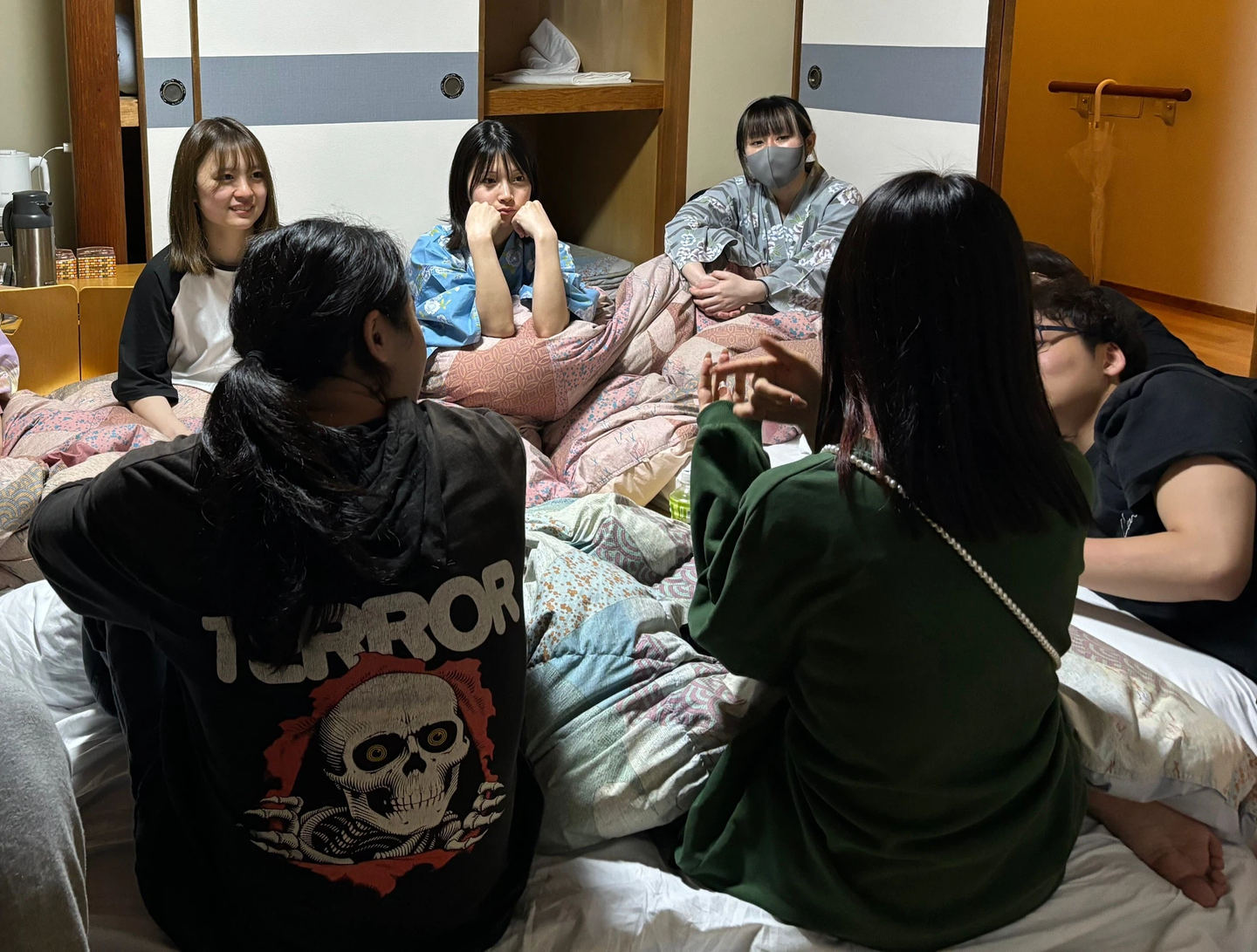 レクが終わり、美味しい懐石料理を食べ、温泉を堪能した後は!10人くらいで部屋に集合して人狼をしました🐺みんなで探り合い、騙し合い………………………