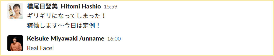 私は、日々業務を開始するタイミングで「本日の稼働開始します!」とSlackに一言投下しています。