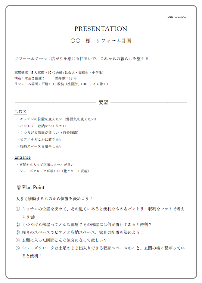 先輩社員がくれたリフォーム計画。これをもとに考えました。