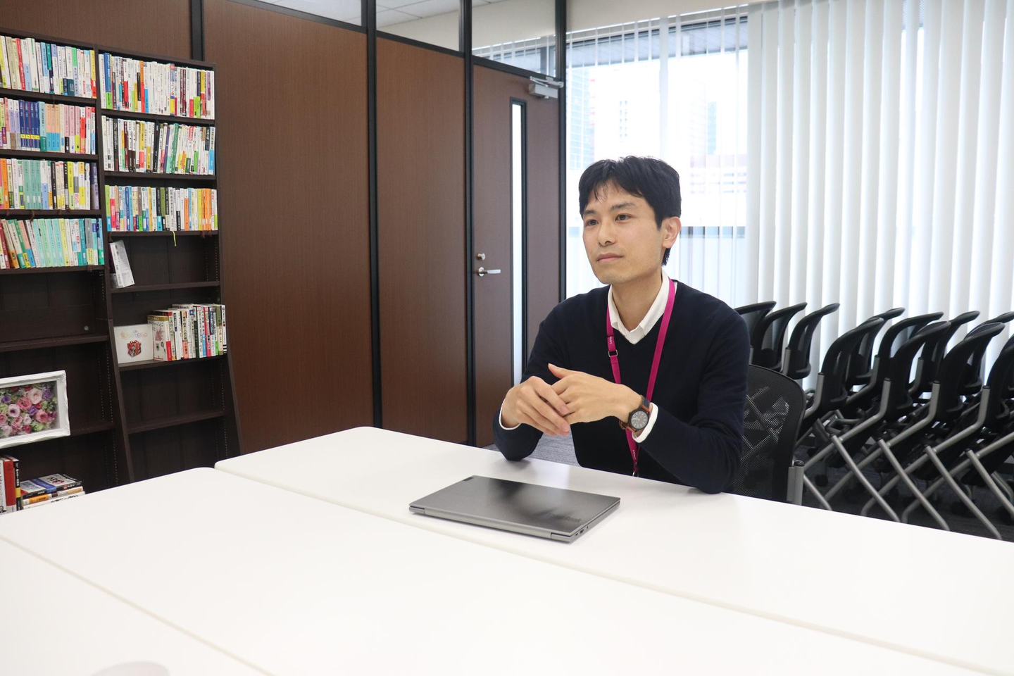 僕の時は集団面接みたいなものが行われましたね。当時の社長・今の社長である神谷さん・当時の部長の三人が会議室で待っていて、僕らスクール生が三人入っていく、みたいな。面接といっても堅苦しいものではなく、雑談っぽい形でした。おかげで緊張せず話をすることができました。面接の中で、「今は自分で弁当を作っている」という話をしたら、当時の社長に褒められたりして…。とにかく終始リラックスできていましたね。