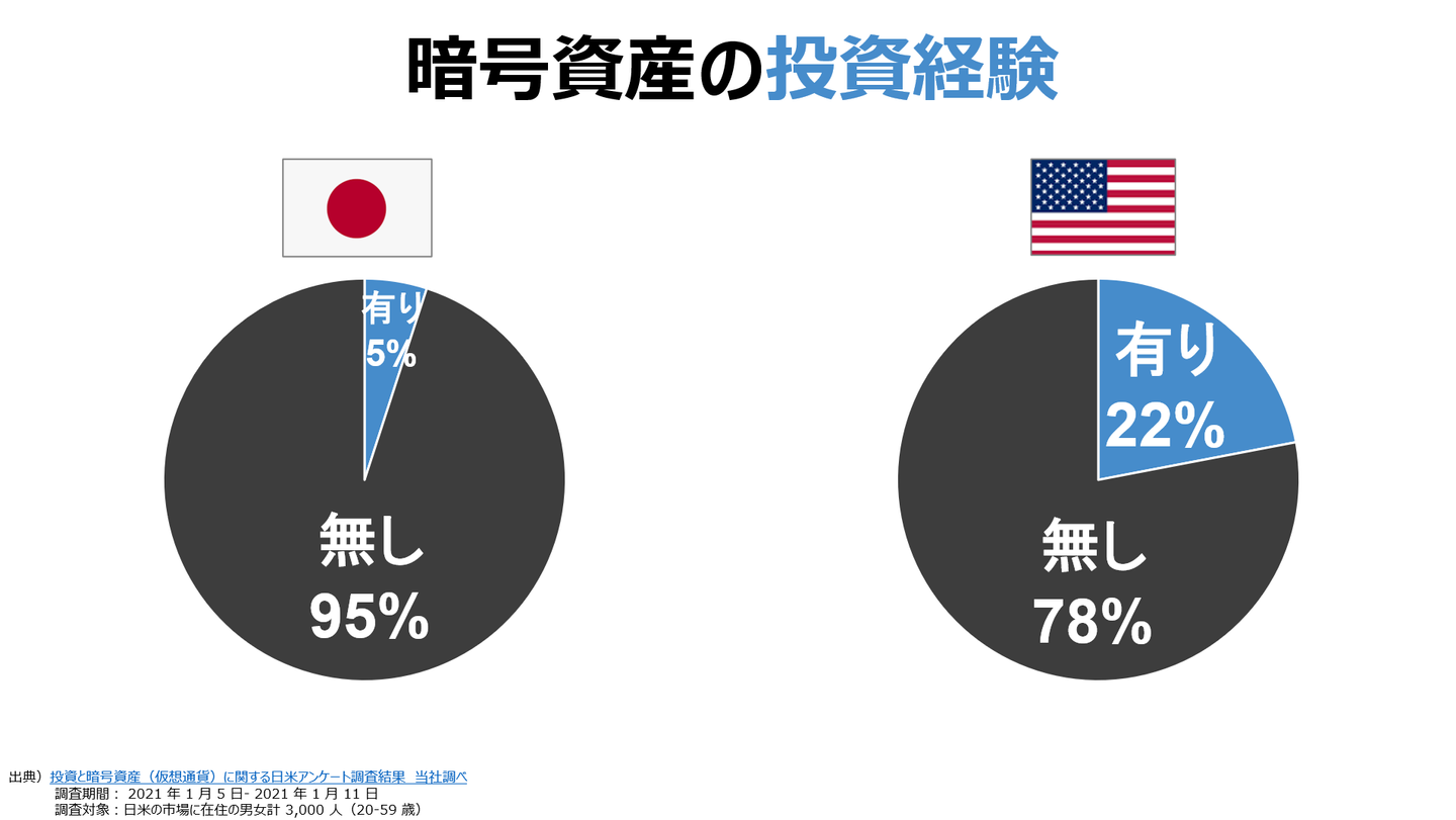 上記のグラフは、私が企画して実施した日米調査の結果です。日本での暗号資産の投資経験は、米国のわずか4分の1に留まっています。日本国内における暗号資産のイメージをよりポジティブなものに変えていくこと、そして暗号資産の正しい理解を広めることもまた、暗号資産のリーディングカンパニーであるbitFlyerの役割だと考えています。そこに非常に大きなポテンシャルを感じています。