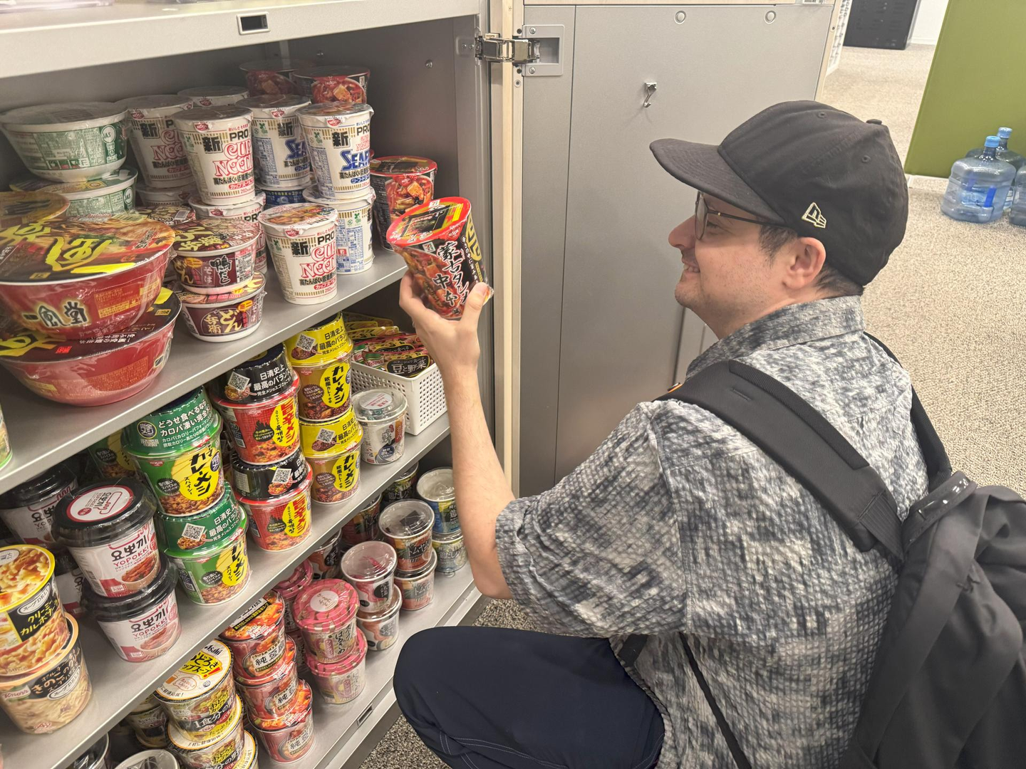 小腹がすいた時は、福利厚生の 1 つのカップ麺を食べています(^^)
