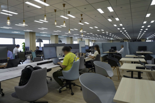 FleGrowth(ITテクノロジー):フリーアドレス制でのびのびとした雰囲気。