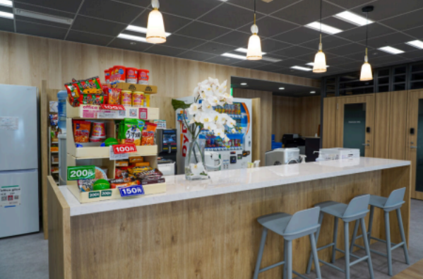 カフェエリアの一角にはカウンターが設置されており、お菓子やドリンクを低価格で購入すること ができ