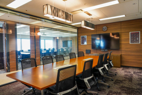 この応接室はオフィスビルの角に位置し、6つの会議室の中で最も開けた眺望を楽しむことができます。
