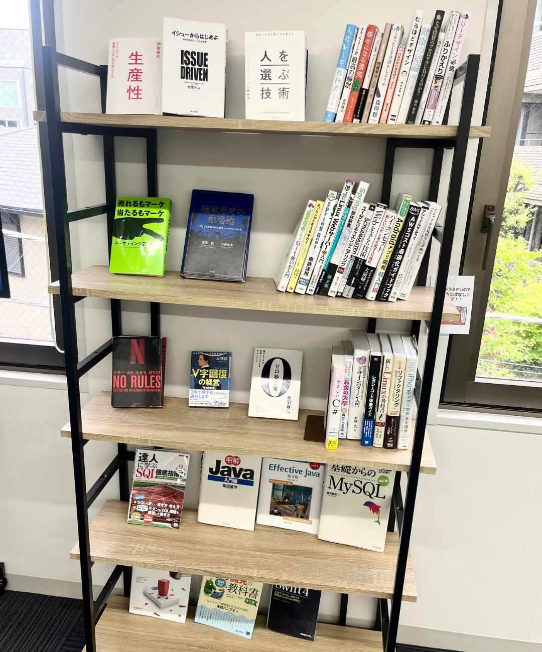 会社の本棚にはすでにいくつかの書籍あるのですが、どれも自由に読むことが可能です!