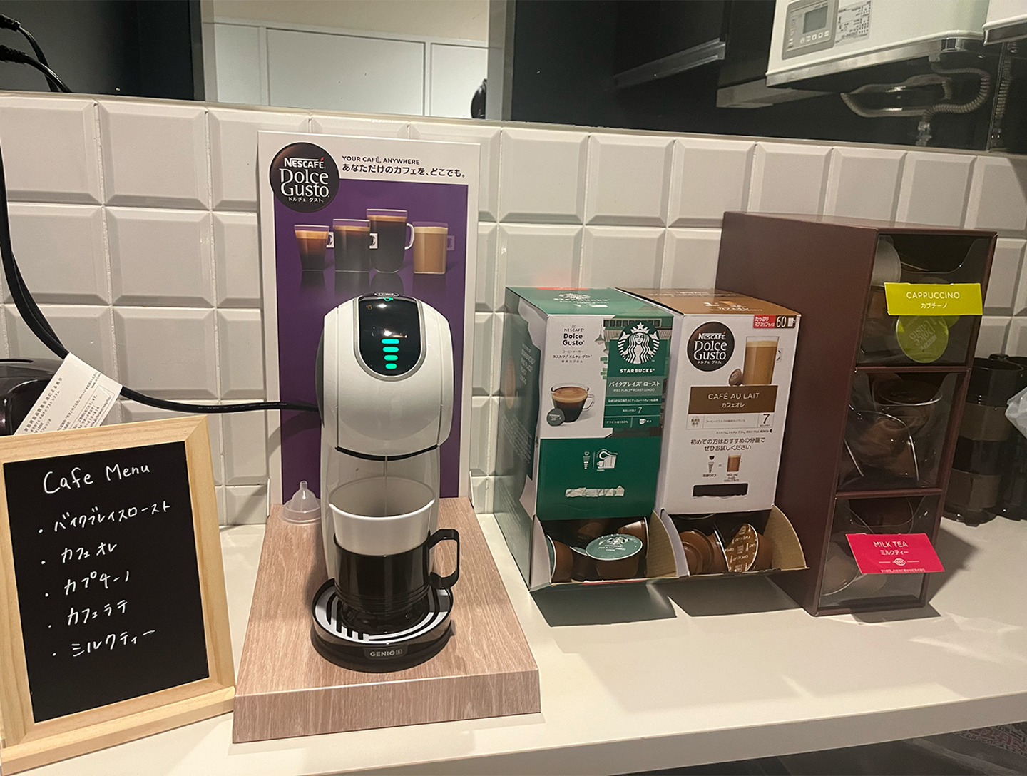 コーヒーマシンは無料で利用できるので、気軽に楽しめるのがありがたいですよね…!