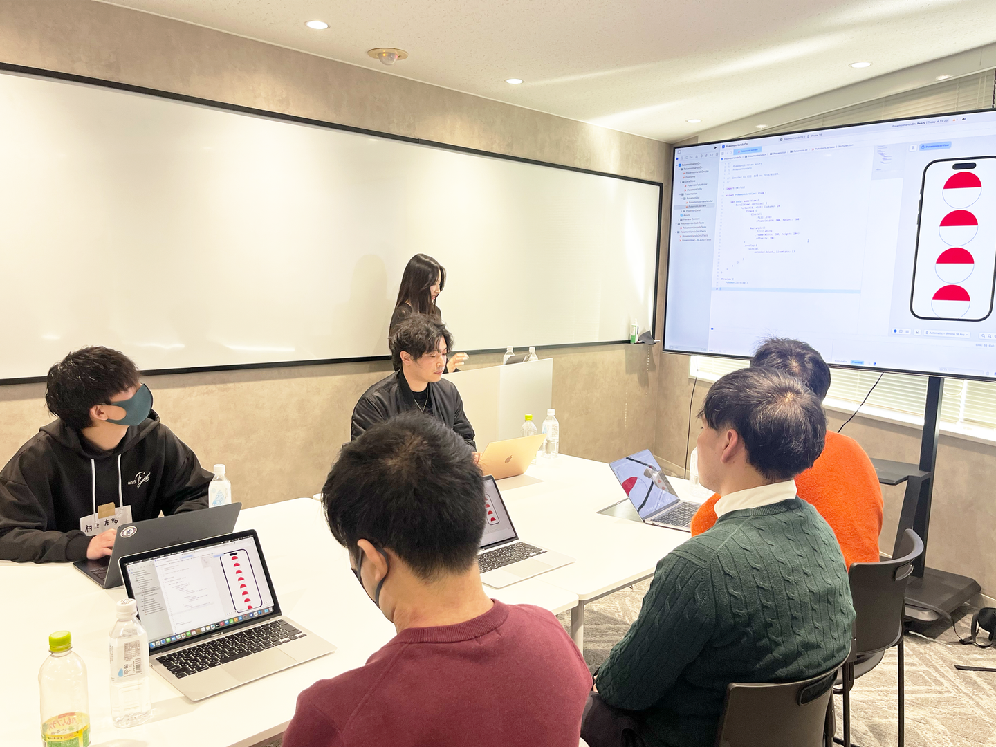 参加者を3グループに分けて、ハンズオン形式でポケモンアプリのコア機能を実装をしました。