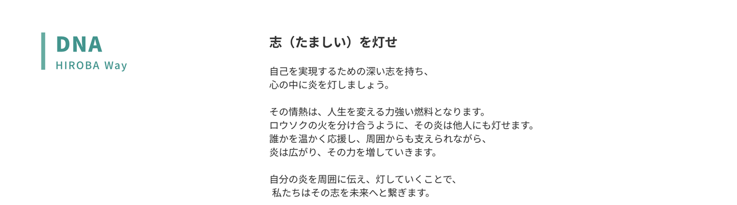 HIROBAメンバー全員が、『志に灯している状態』であること目指し行動していきます。