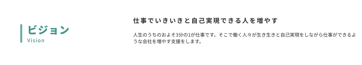 Vision「仕事でいきいきと自己実現できる人を増やす」