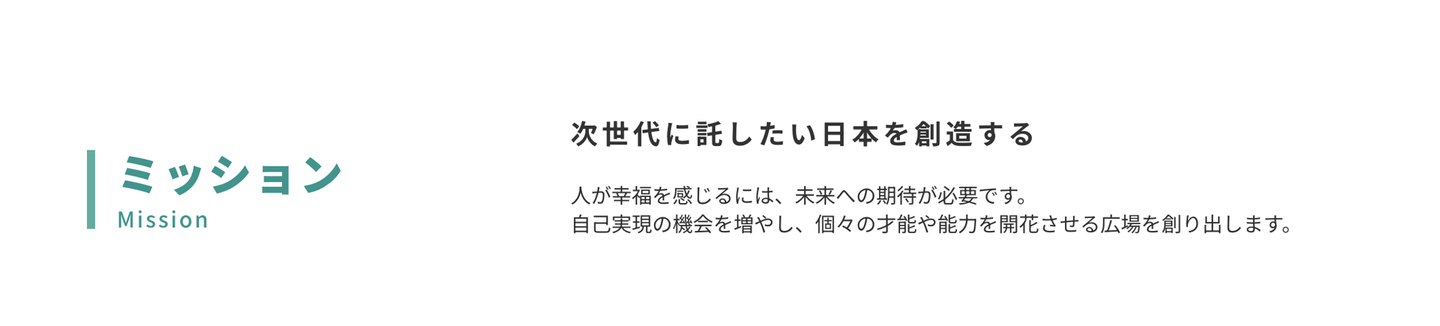 Mission「次世代に託したい日本を創造する」