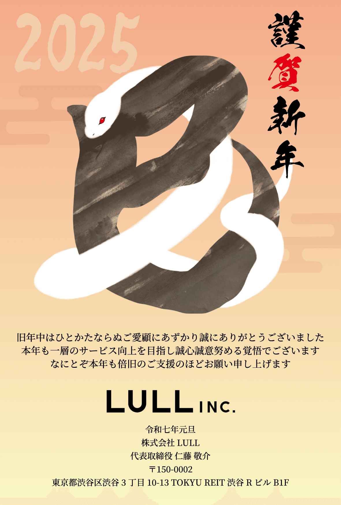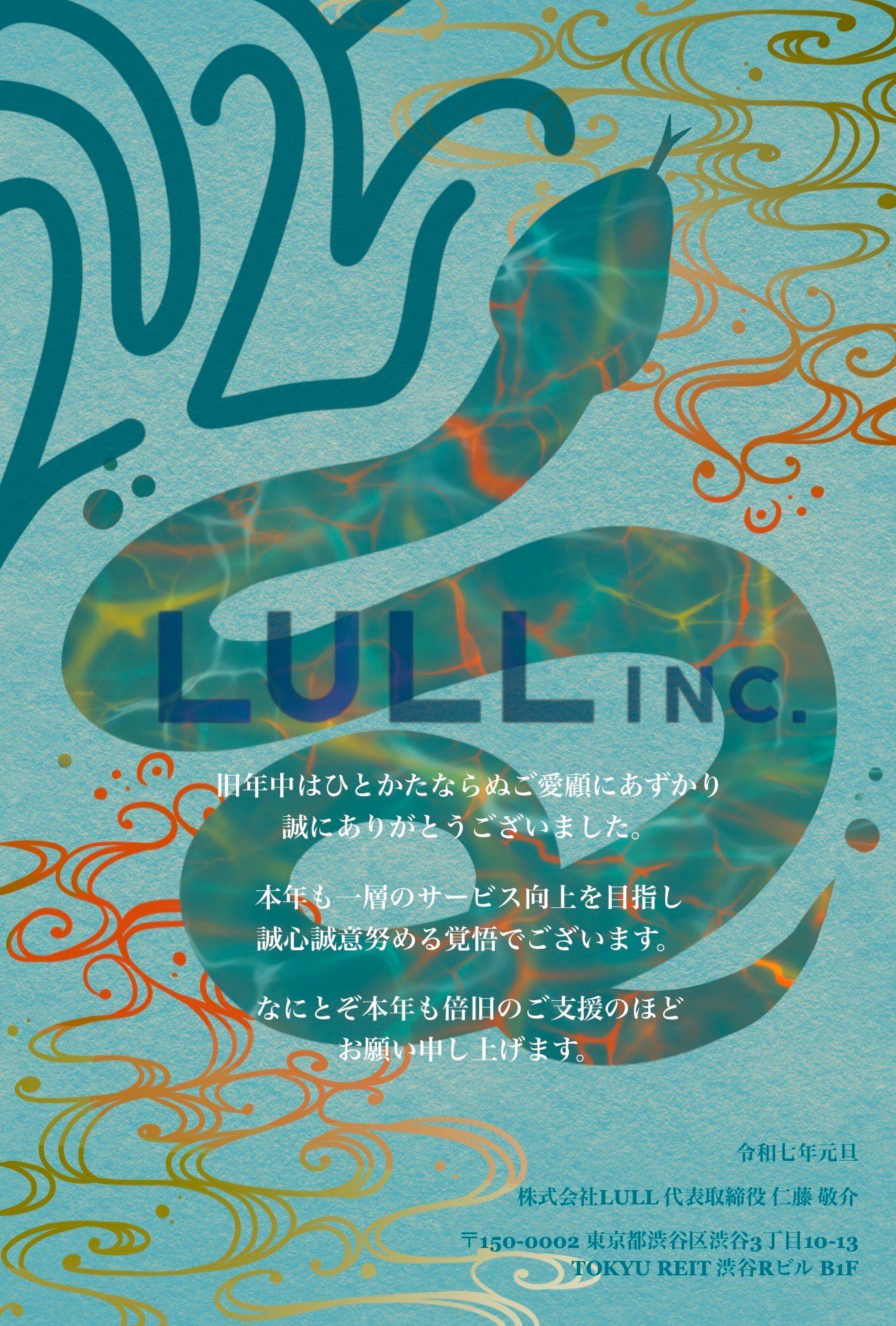 LULLのイメージカラーといえば青!!そんな青をたくさん使い色使いも明るすぎず、暗すぎずなシックな色合いでお正月にぴったりの配色!登りあがっていく様に見える蛇のデザインが2025年のLULLを勢い付けてくれそうですね!本当にありがとうございます!