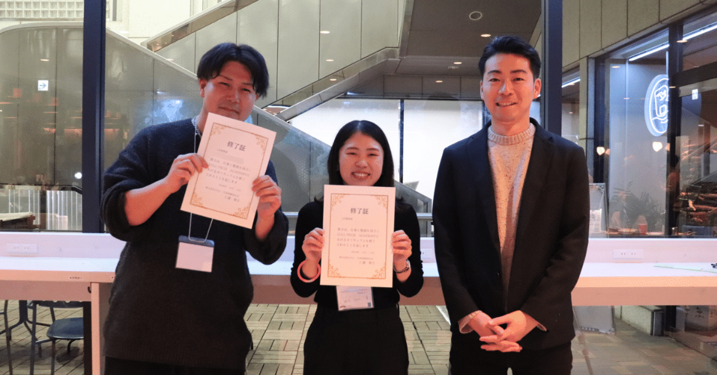 代表取締役の仁藤さんから修了者一人ひとりに賞状が手渡され、その努力と成長が讃えられます。会場全体が温かい拍手で包まれる感動的な瞬間でした!