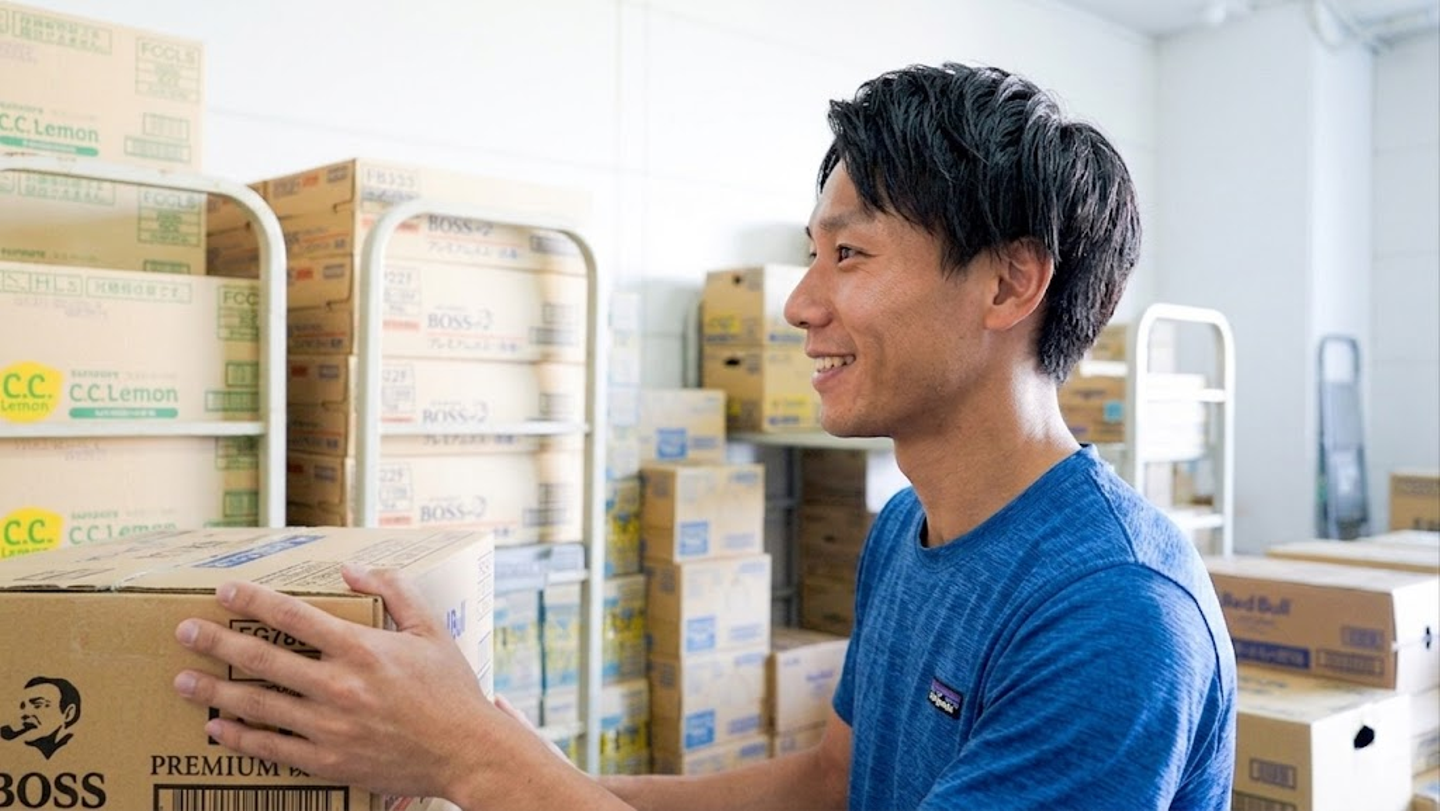 愛和食品の沖縄支社でリーダーを務める名城優飛(なしろゆうひ)。入社前はサッカー選手として活動してきた経歴を持っています。