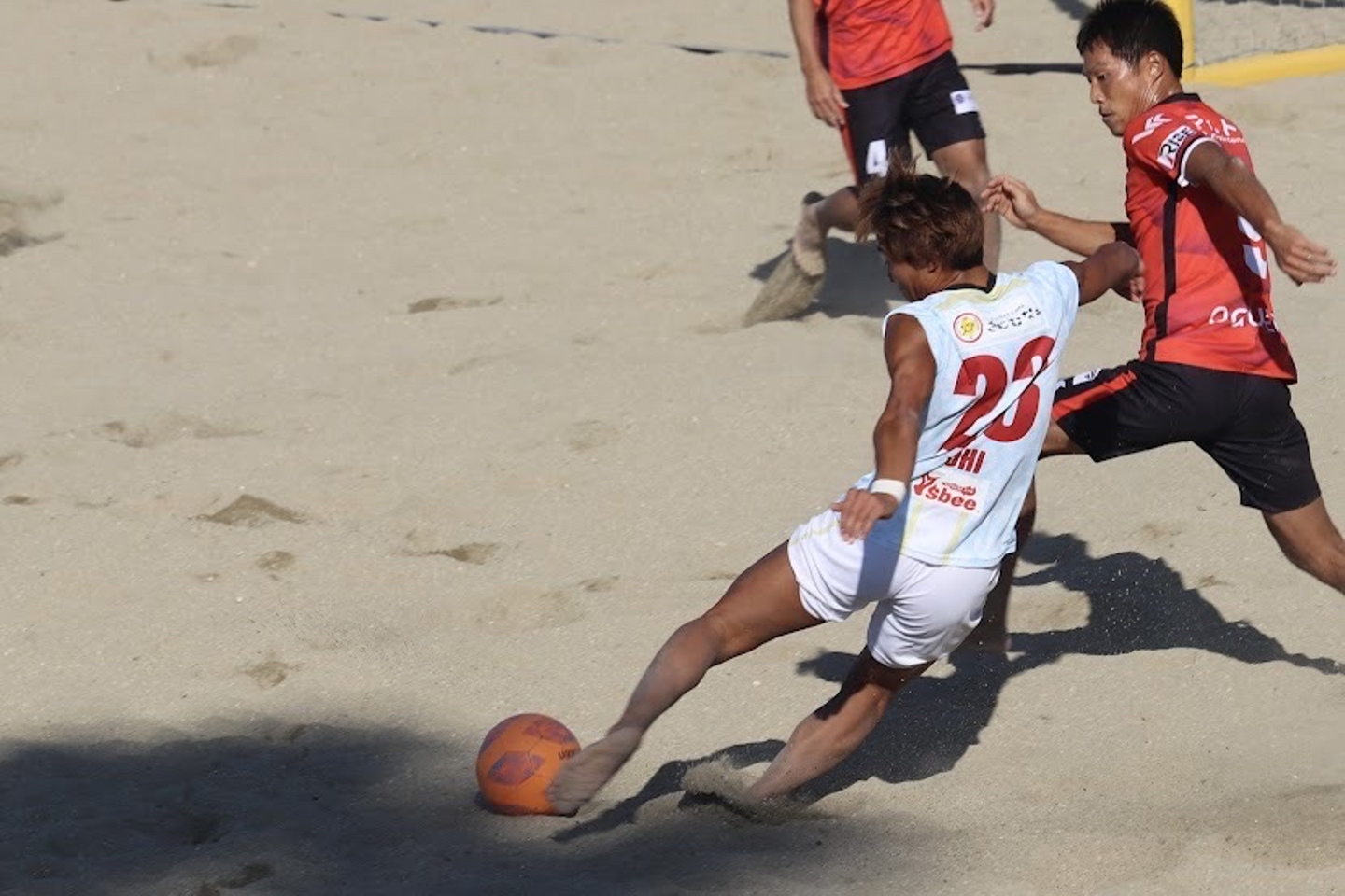 沖縄には、ビーチサッカー選手として活動するために5年前にやってきました。ただし、以前から「25歳までにサッカーで芽が出なかったら、次のキャリアに進もう」と考えていて、24歳で現役引退を決意。就職活動を始め、3年前に愛和食品に入社しました。