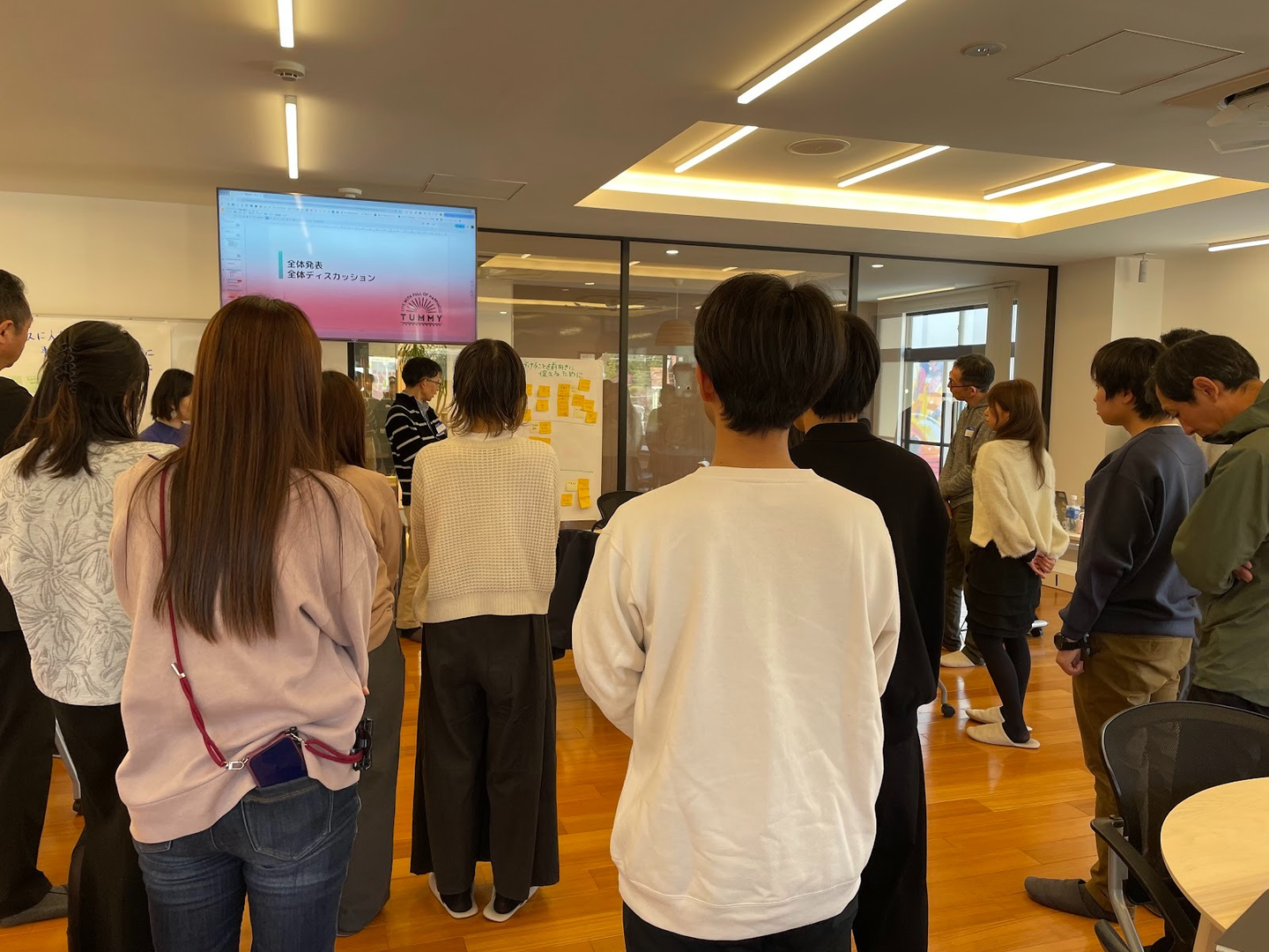 普段は交わることの少ない部門の社員たちが集まり、真剣に、ときどき笑顔と笑いを交えながら議論を行いました。