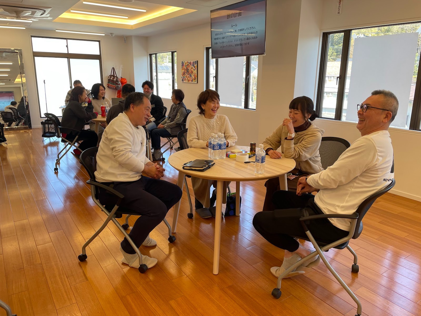 ▲チームに分かれたら、まずはアイスブレイク。普段は違う部署で働いていても、すぐに打ち解けて笑顔が広がるのは「愛和らしさ」のひとつかもしれません。