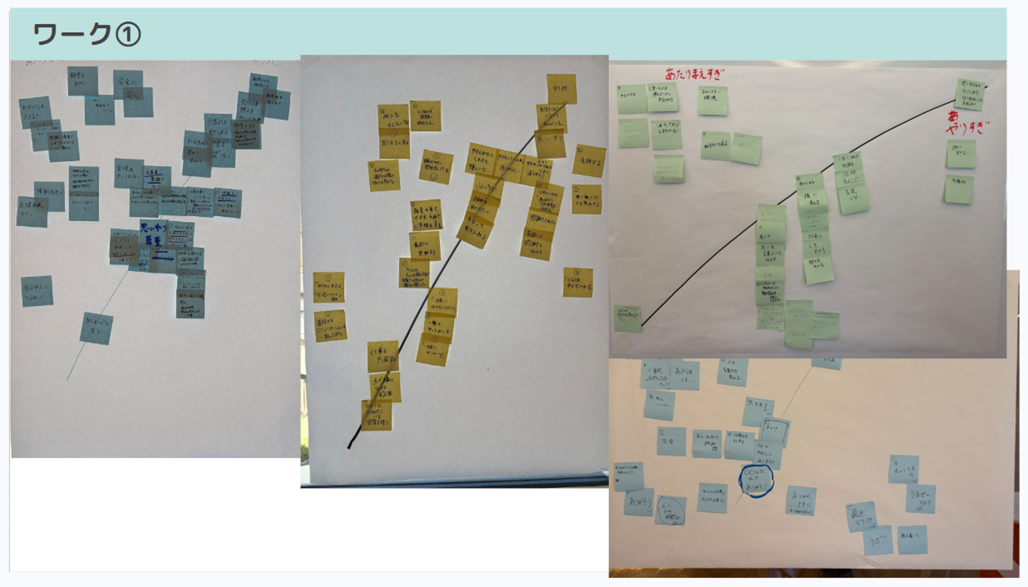 意見を出した人にとっては、普段から当たり前に心掛けていることかもしれませんが、改めて共有することで、お互いの目線をあわせていく時間になったように感じました。