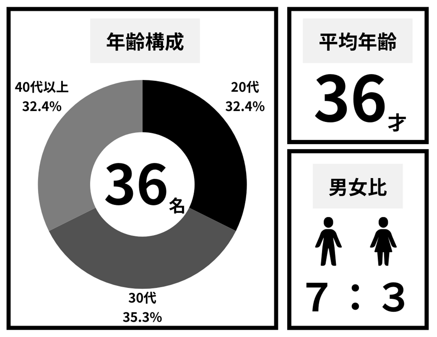従業員構成の約7割が男性ですが、これはメンズスキンケアブランド単独で事業を展開しているため、男性からのエントリーが多いことが背景にあります。