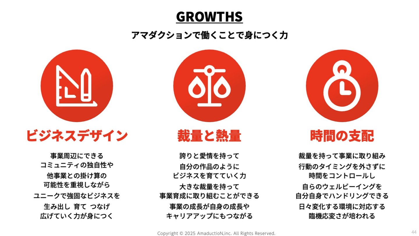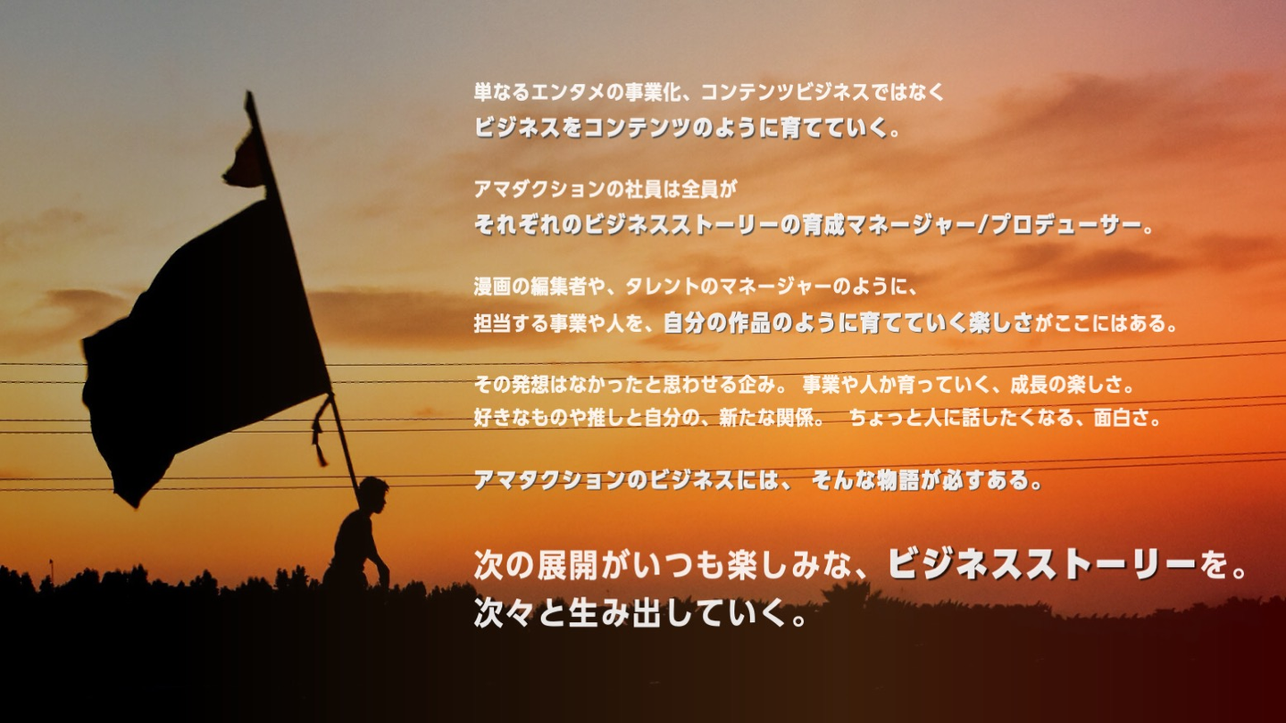 アマダクションの社員は全員が、それぞれのビジネスストーリーの育成マネージャー / プロデューサー。