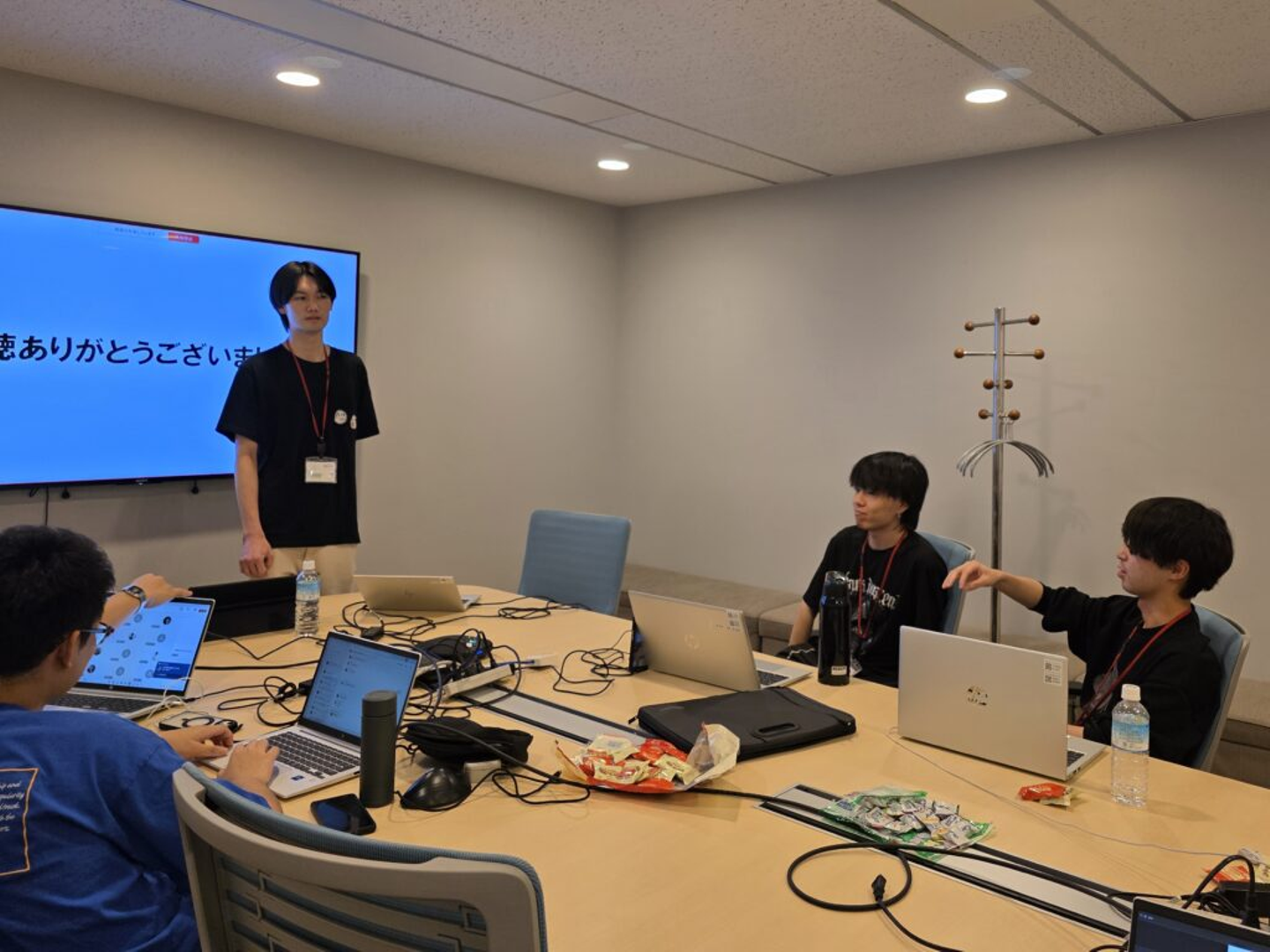 新人Techプレゼンは、研修の枠を超え、広くPF本部全体から周知し、先輩社員も参加しみんなで盛り上がりました。ハイブリッド開催でしたが、オフライン会場では、プレゼンをきっかけに終了後も、新人5名各自の専門領域や学生時代に取組んだ技術など、話が尽きませんでした。