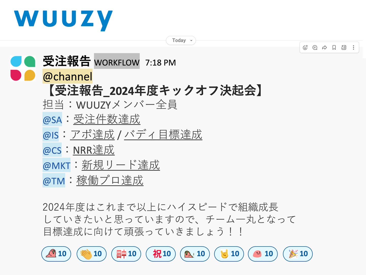 ↑WUUZYで1番Slackがお祭りモードになる受注報告を模したスライド