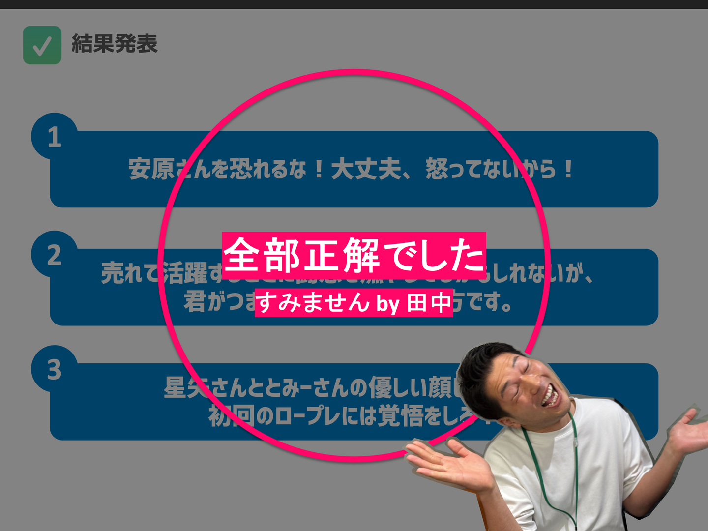 白熱したクイズ大会ですが、優勝したのはチーム坂井!