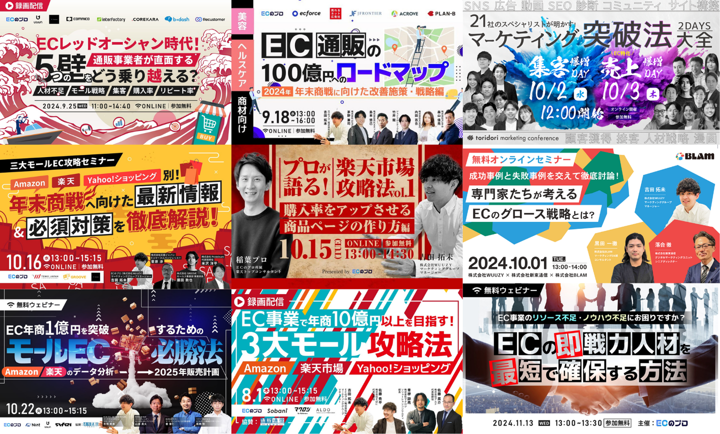 ECの事業者さんが「今何を知りたいか」を考え、テーマ設定を行い、色々な会社さんと一緒にセミナーを作りあげてます