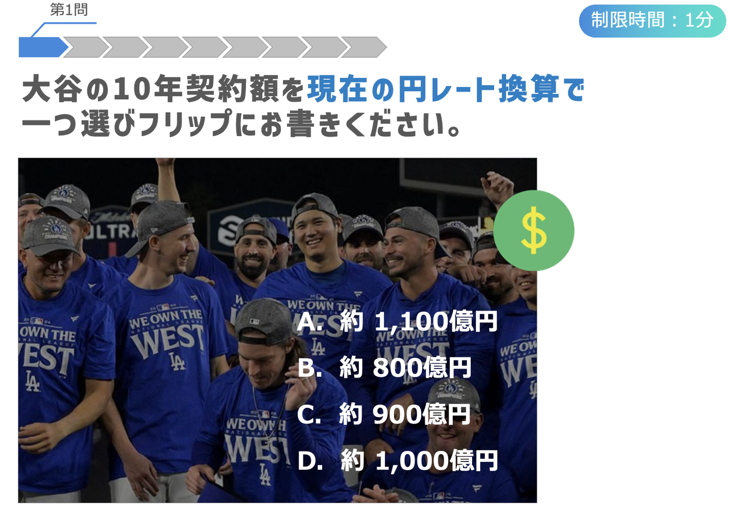 なんと1位〜8位まで、プロの年間獲得報酬ランキングを並び替えるという問題!