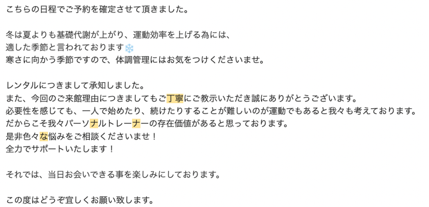 だからこそ今まで外注する事無く、我々トレーナー陣がメールへの対応をしていました。
