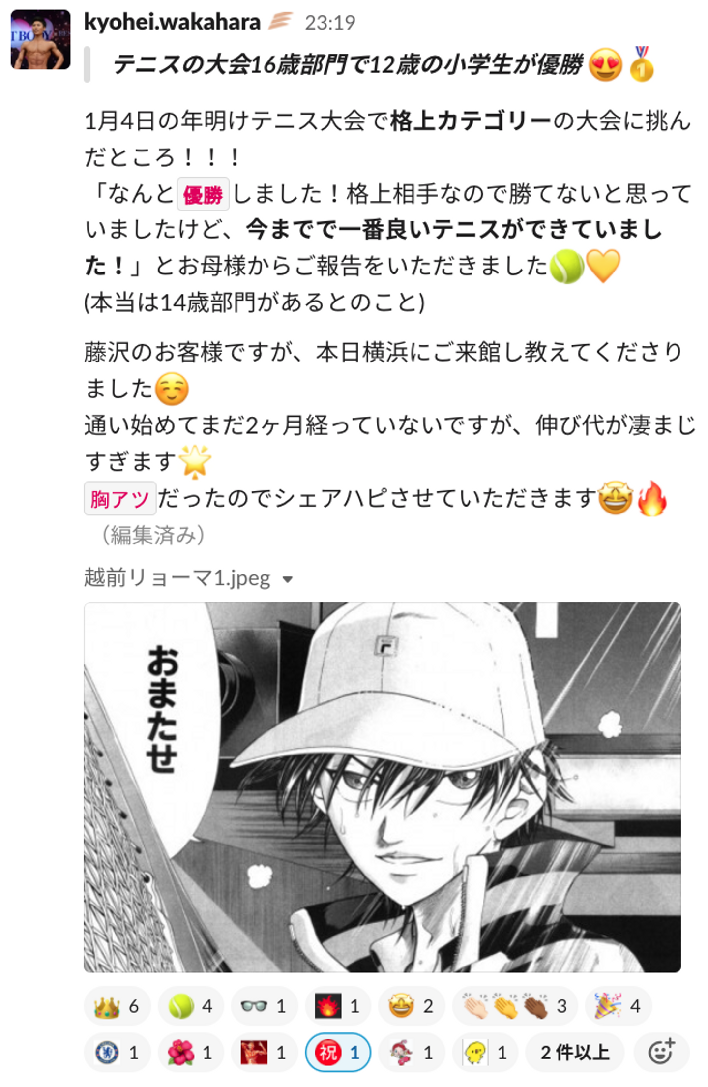 文中では、我々の笑顔に支えられているというメッセージがありますが、むしろ支えられているのは、我々トレーナー陣です。