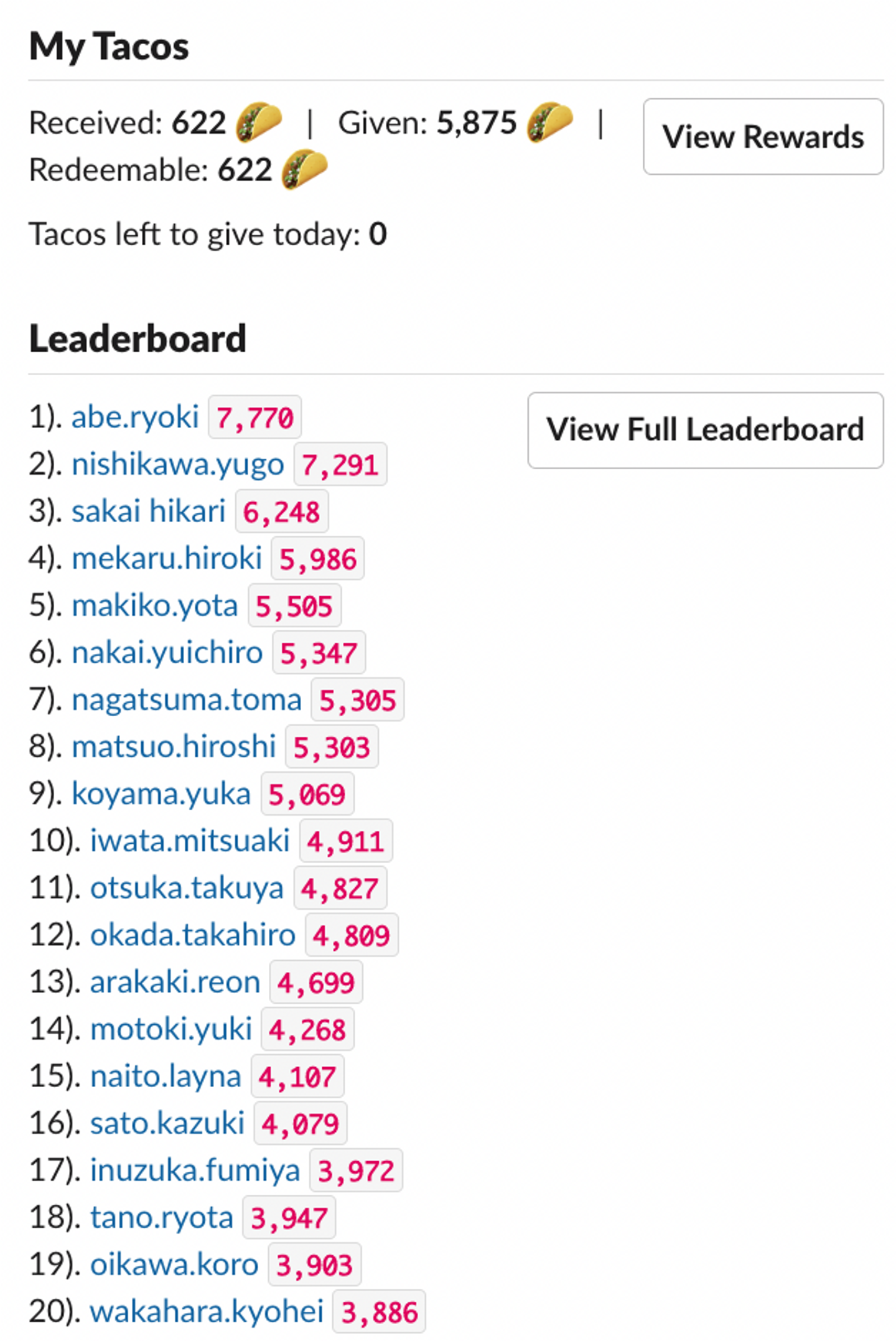 そして、3ヶ月に一度貰ったピアボーナス(🌮)の数に応じて、給与に上乗せしてピアボーナスという形で支給しています。