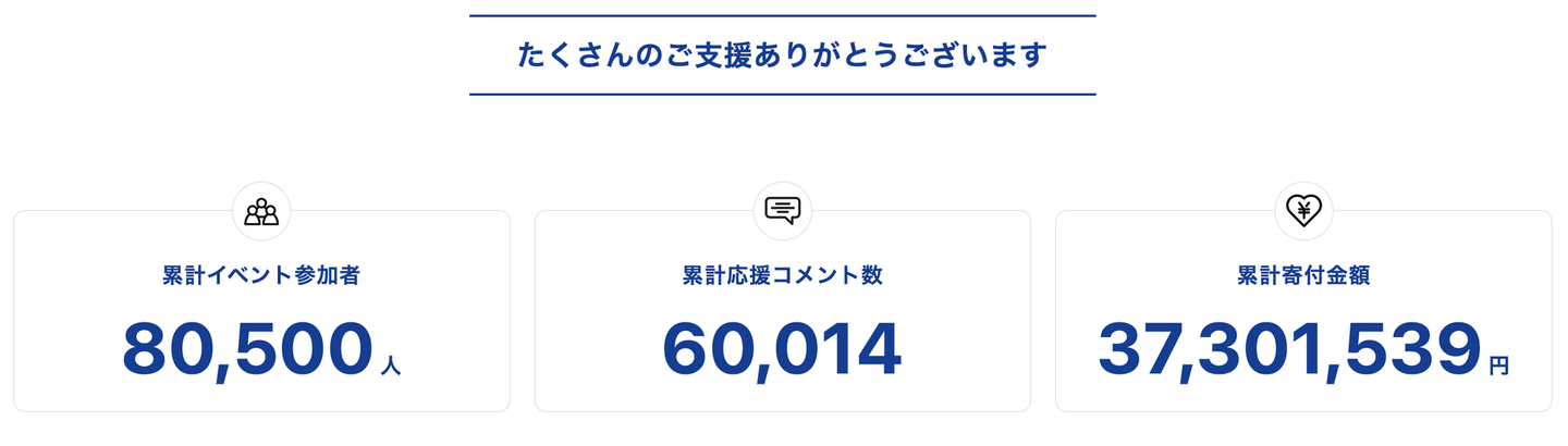 全国【120大学】が参加し、【10日間で47万人】が参加、累計寄付総額は【3億円】にも上ります。