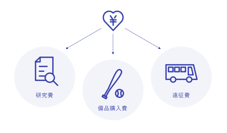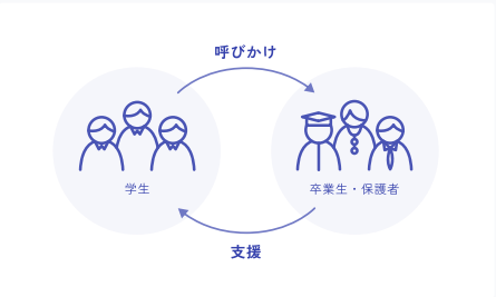 その呼びかけに対して、卒業生や各団体のOB・OG、在校生の保護者を中心に、学生の挑戦を応援することができます。